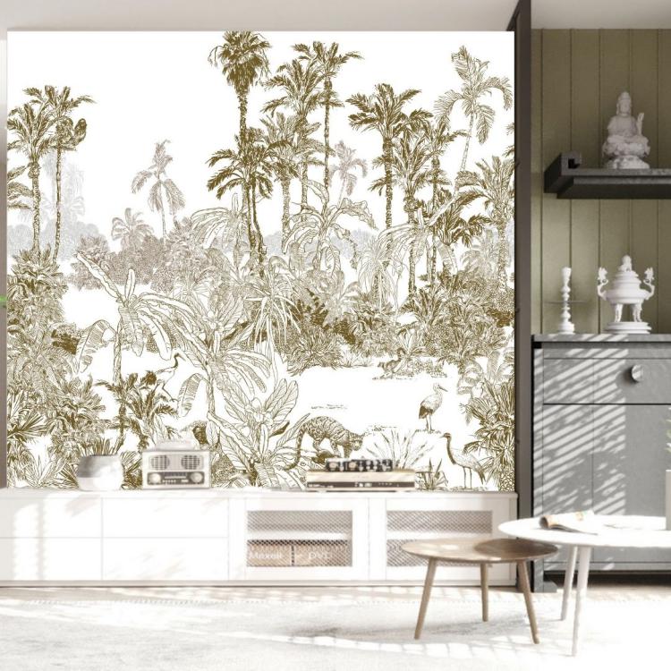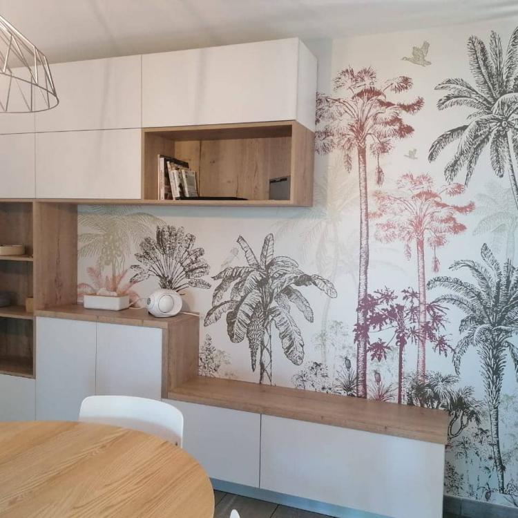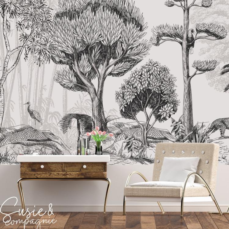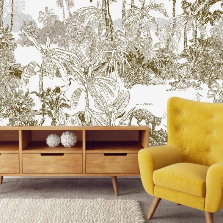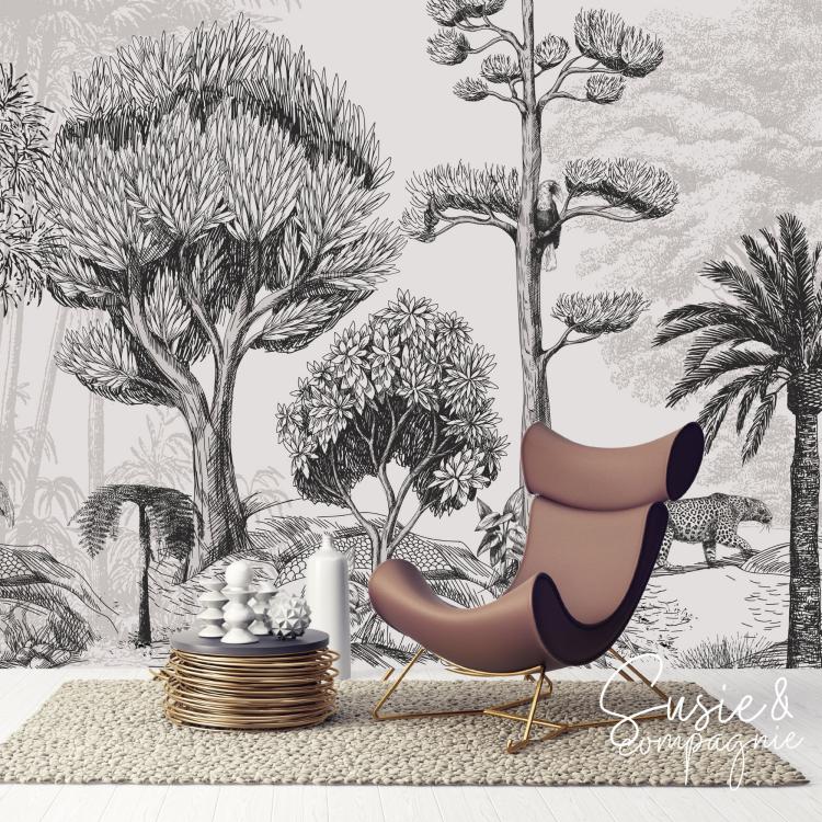 LA CANOPÉE est une forêt dense avec cette fois - ci des grands sujets dans la composition et avec de grands aplats de couleurs. Il peut être composé de plusieurs couleurs en harmonie de Kaki & Terracotta ou bien en mono - couleur.